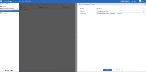 2.Create a new firmware template in FortiManager by going to Device Manager → Firmware Templates and selecting Create New.