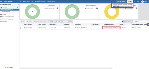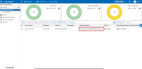 You can then verify the new firmware version on both FortiGate and FortiManager to confirm that the upgrade was successful.