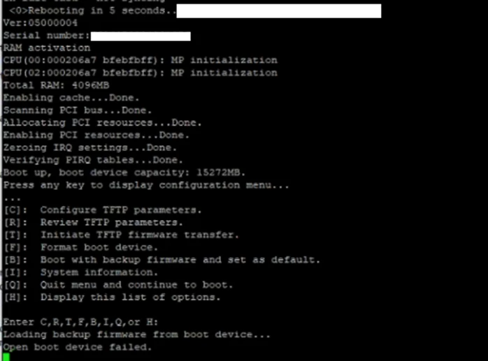 We also need to install firmware from the TFTP server when the message 'OPEN BOOT DEVICE FAILED' shows up on the console. The local TFTP server is used for this purpose. The local TFTP server is necessary to fix the 'OPEN BOOT DEVICE FAILED' issue.