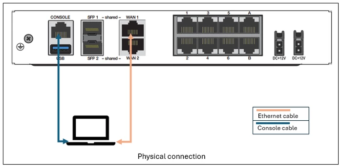 The connection can be made on any Ethernet port. In this case, the WAN1 or MGMT interface. Download the