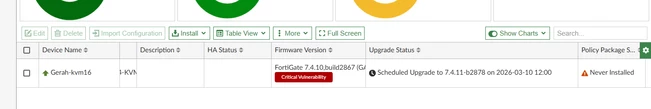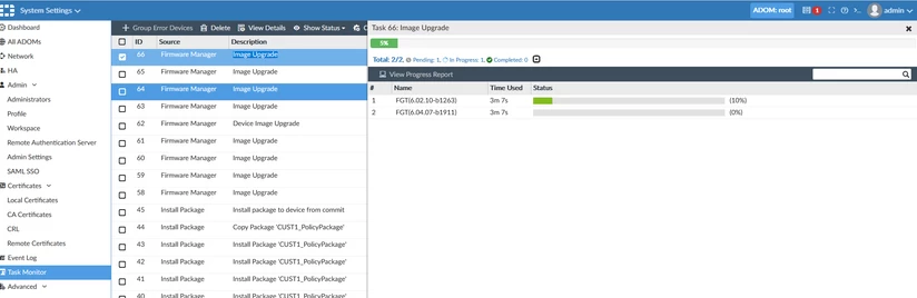 2. If the device is already registered in FortiManager, the upgrade can be scheduled using: